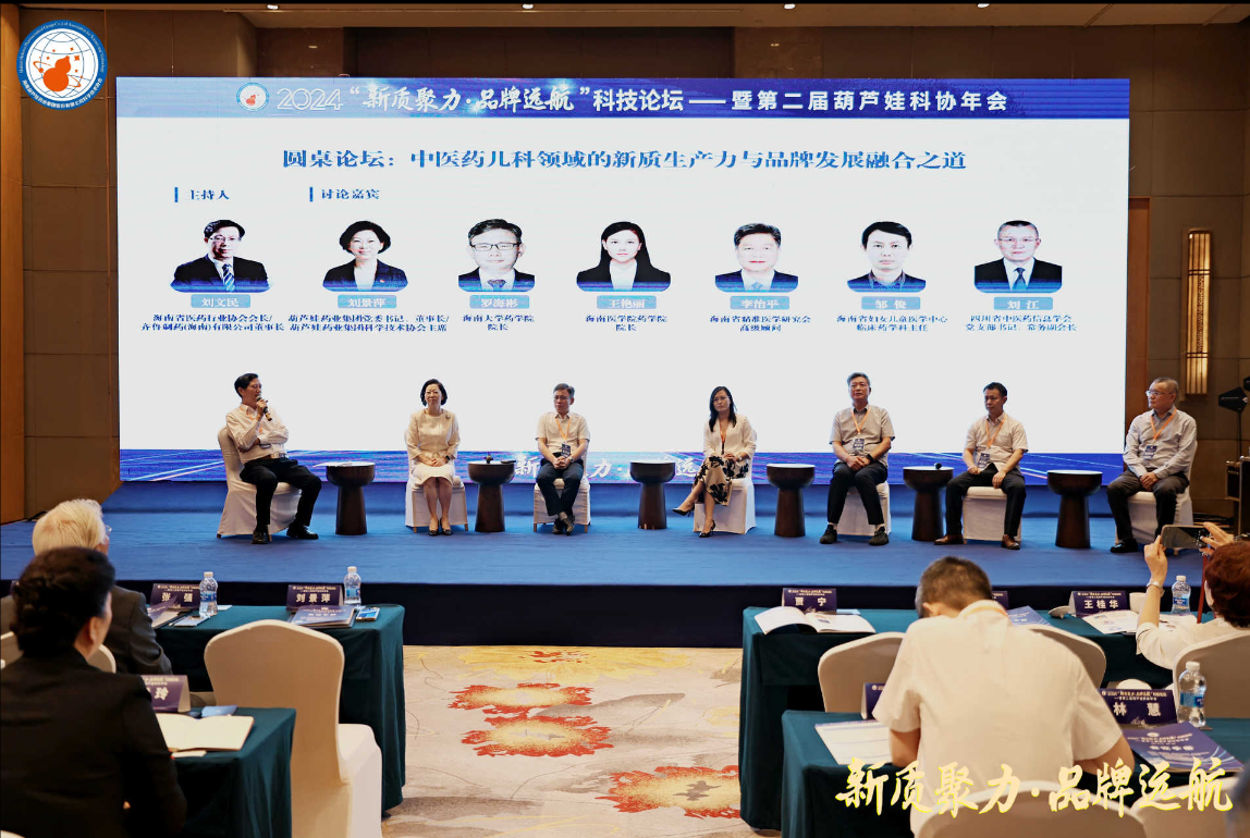 G22恒峰药业集团党委书记、董事长刘景萍,海南大学药学院院长罗海彬、海南医学院药学院院长王艳丽、海南省精准医学研究会高级顾问李治平、海南省妇女儿童医学中心临床药学科主任邹俊,四川省中医药信息学会党委书记、常务副会长刘江等,在主题为“中医药儿科领域的新质生产力与品牌发展融合之道”的圆桌论坛中积极献策。海南省医药行业协会会长、齐鲁制药(海南)有限公司董事长刘文民主持论坛。